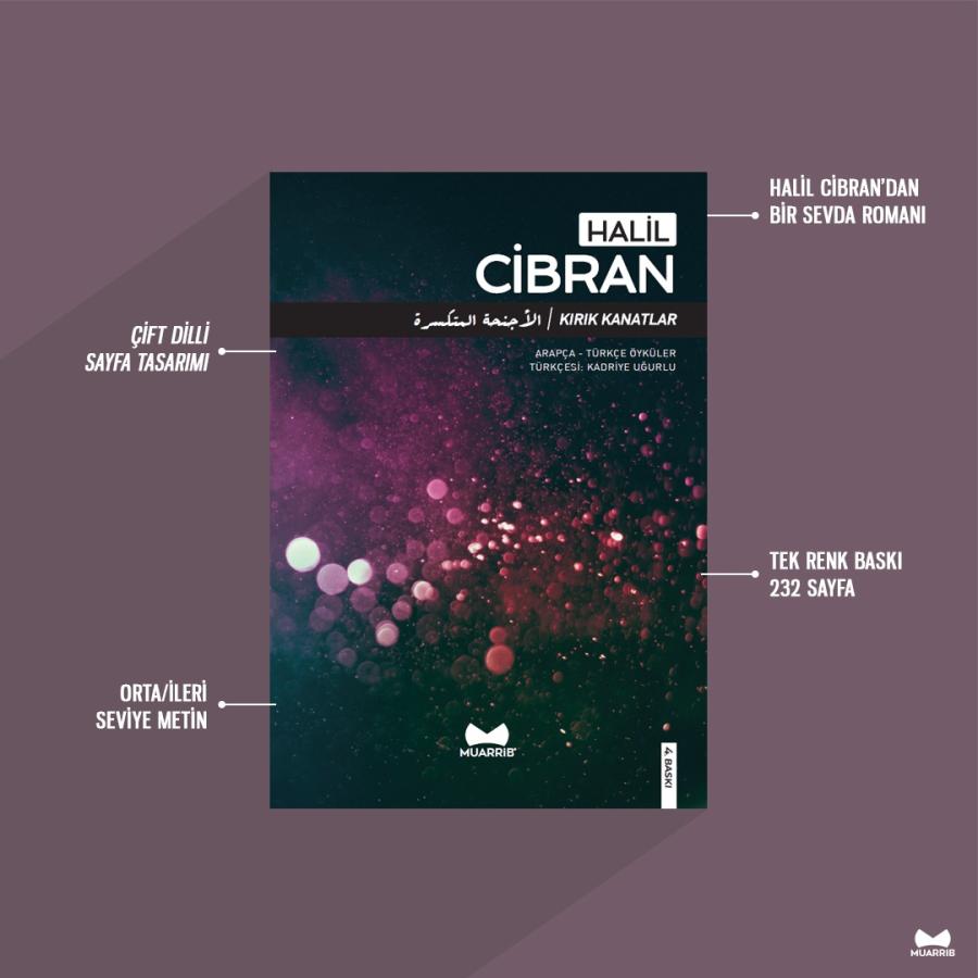 Kırık Kanatlar, Muarrib'in ikinci eseri. Halil Cibran'ın en ünlü eserlerinden biri olan romanın çevirisi Marmara Üni. İlahiyat Fakültesi Çeviri Atolyesi ekibinden Ahmer Harman, Burak Duran, Emrullak Kurt, Halil İbrahim Salman, Kamile Kaş, Merve Şahin, Sümeyye Oyan, Zeynelabidin Soysal tarafından, son okuması ise Kadriye Uğurlu tarafından yapıldı. Editörlüğünü Abdussamed Yeşildağ, yönetmenliğini Muhammed Yasin Can üstlendi.
